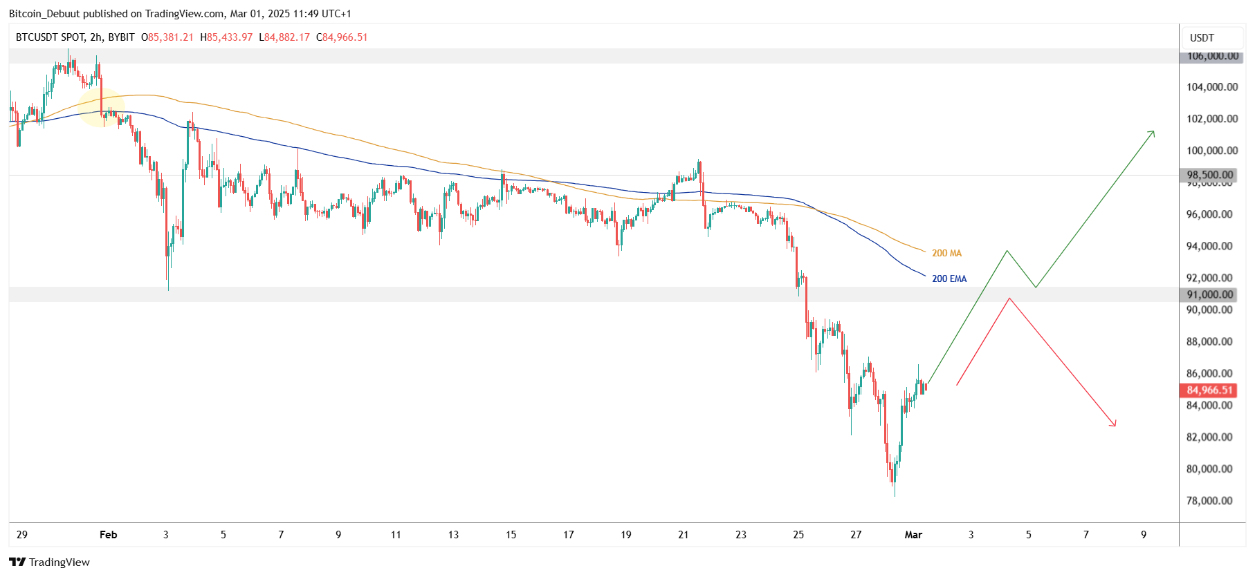 Mocht bitcoin binnenkort daadwerkelijk $91K en de 200 MA’s testen, dan wordt het spannend. Weten we deze niveaus bullish om te draaien, of wordt het een bearish retest van voormalig support? Beide scenario’s zijn terug te zien in de grafieken!